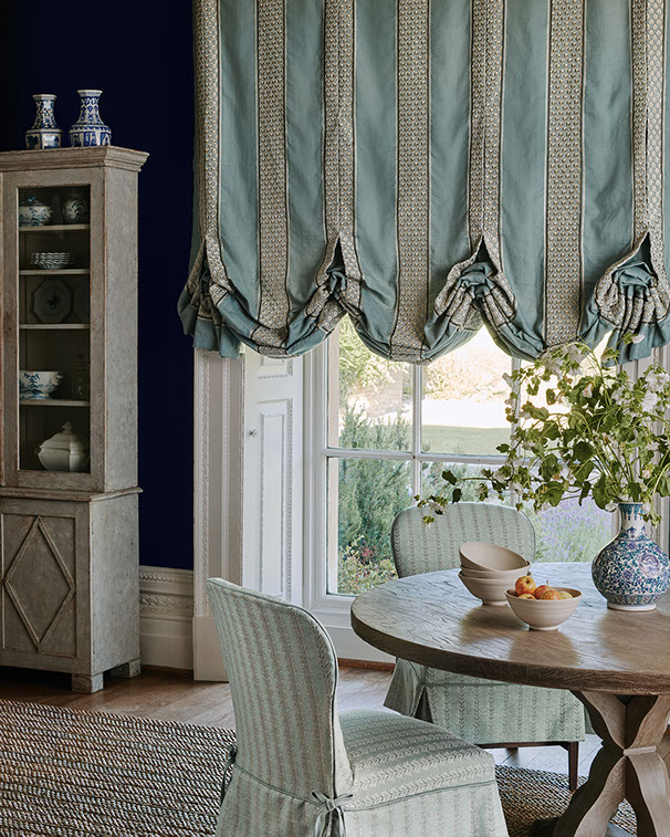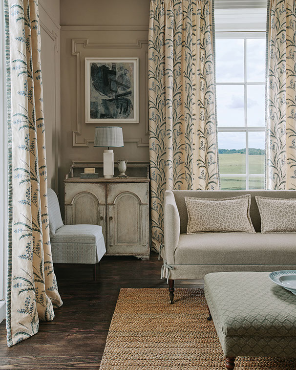Highly wrought embroideries, layered prints and artisan Italian weaves are filtered through the unique Colefax and Fowler perspective, enriched with an English decorating tradition that spans nine decades.